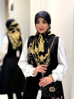 این روسری از جنس ابریشم ژاکارد بوده و عرض ۱۲۰ می باشد