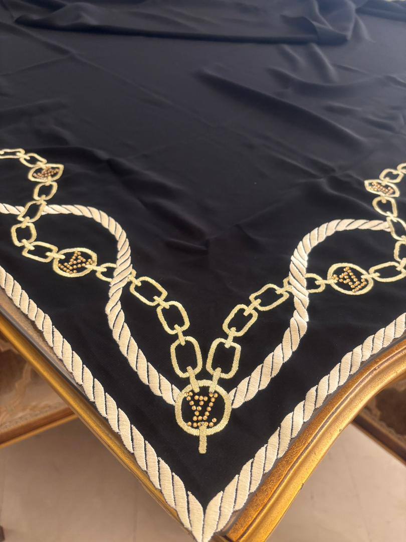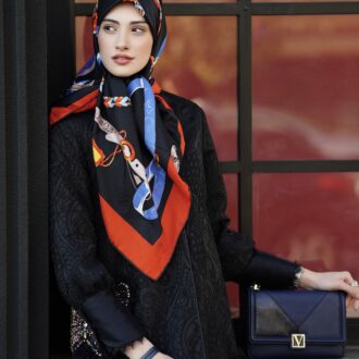 این روسری از جنس ابریشم ژاکارد بوده و عرض ۱۲۰ می باشد