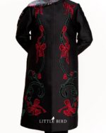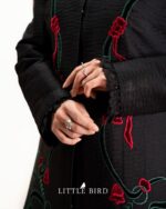 این مانتو با جنس ژاکارد، لایی شده و دارای یقه ۳ سانت است و مناسب چهارفصل است.